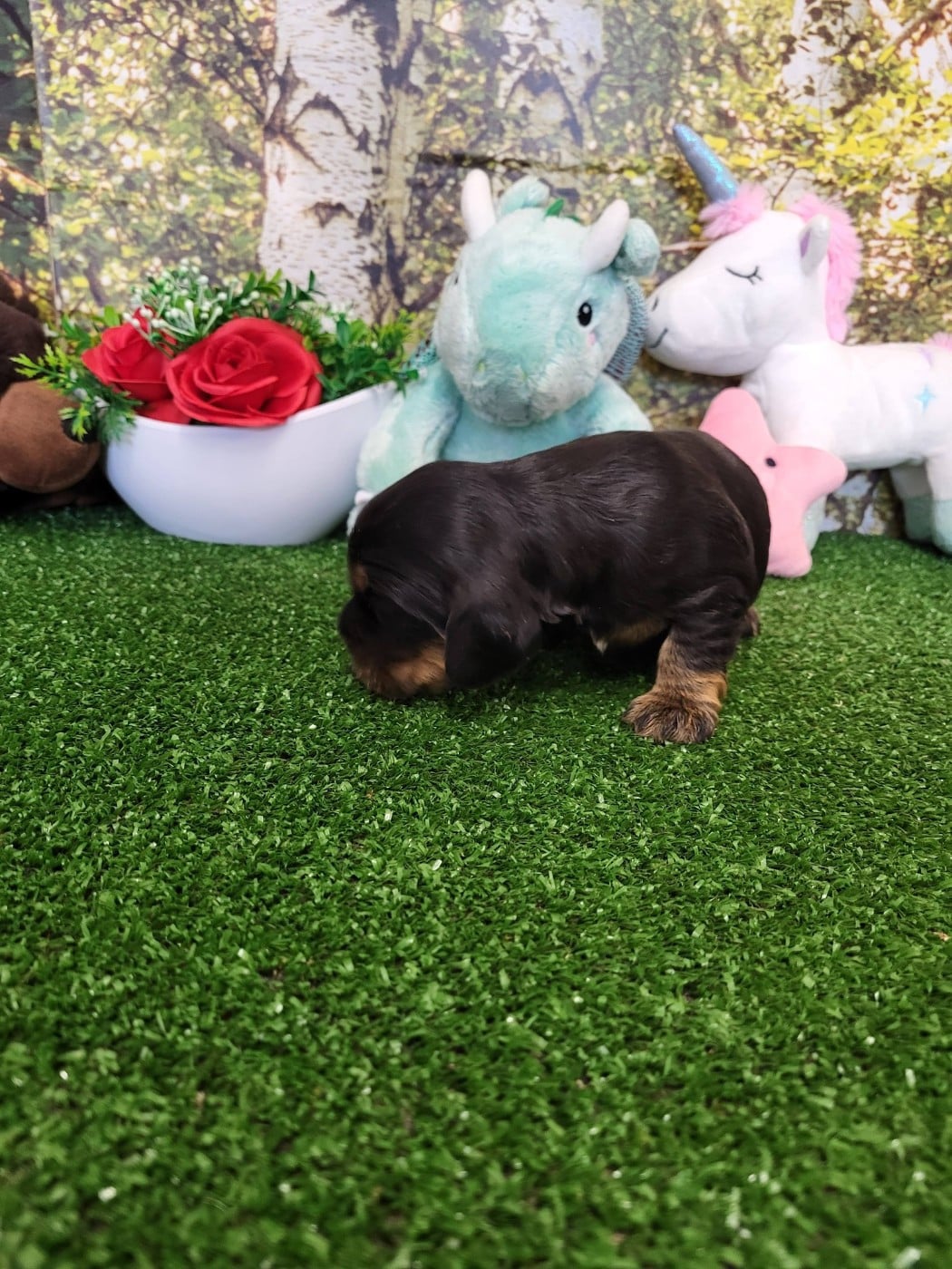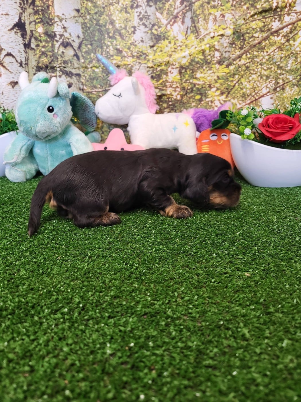 superbe femelle de couleur noire et feu comme maman, ne porte pas de collier car c'est la seule de la portée !!!