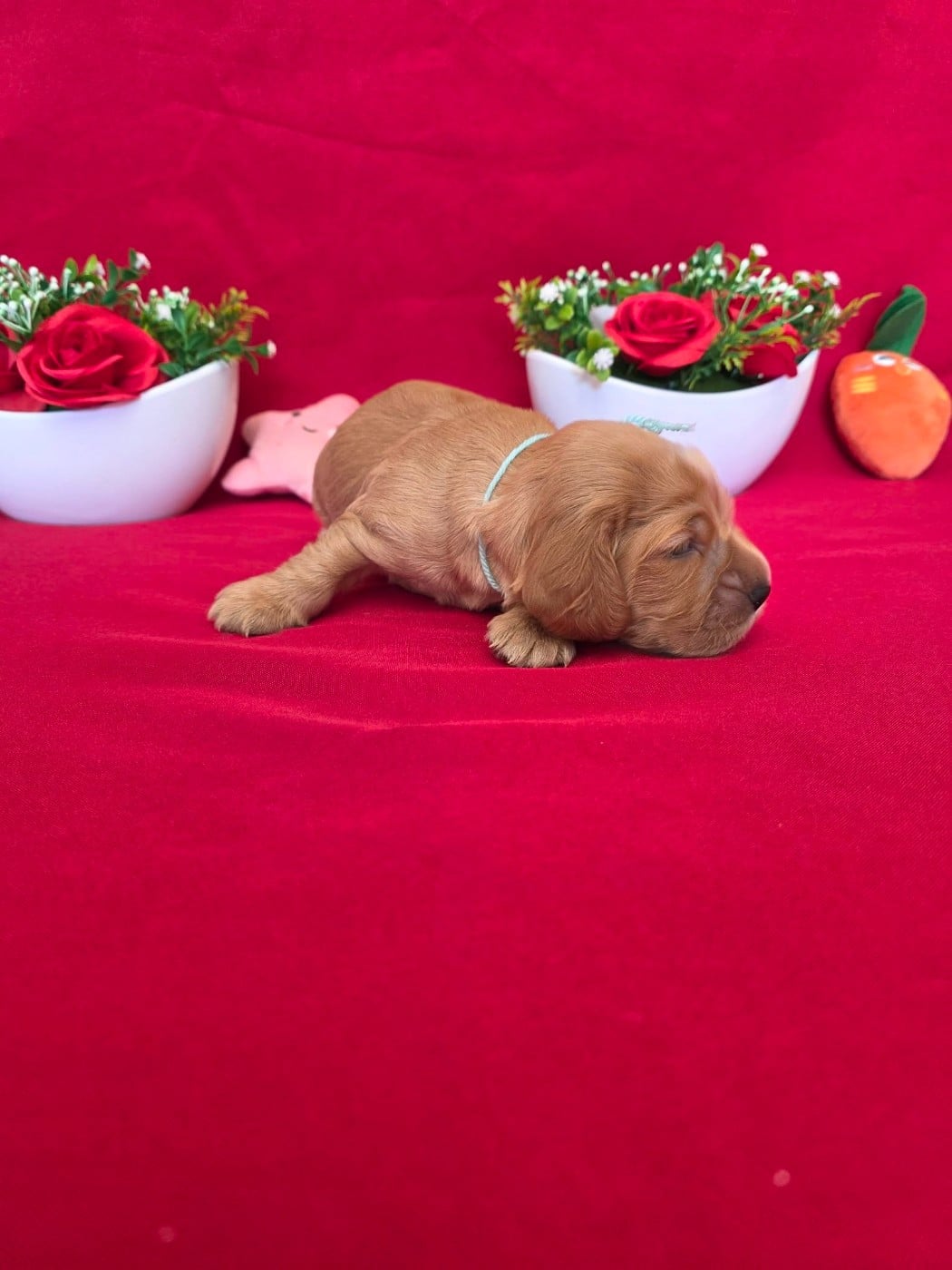 superbe mâle de couleur golden, avec un point blanc au poitrail qui ne restera peut-être pas en grandissant, il porte le collier rouge !!! part chez laurène dans le 17 !!!