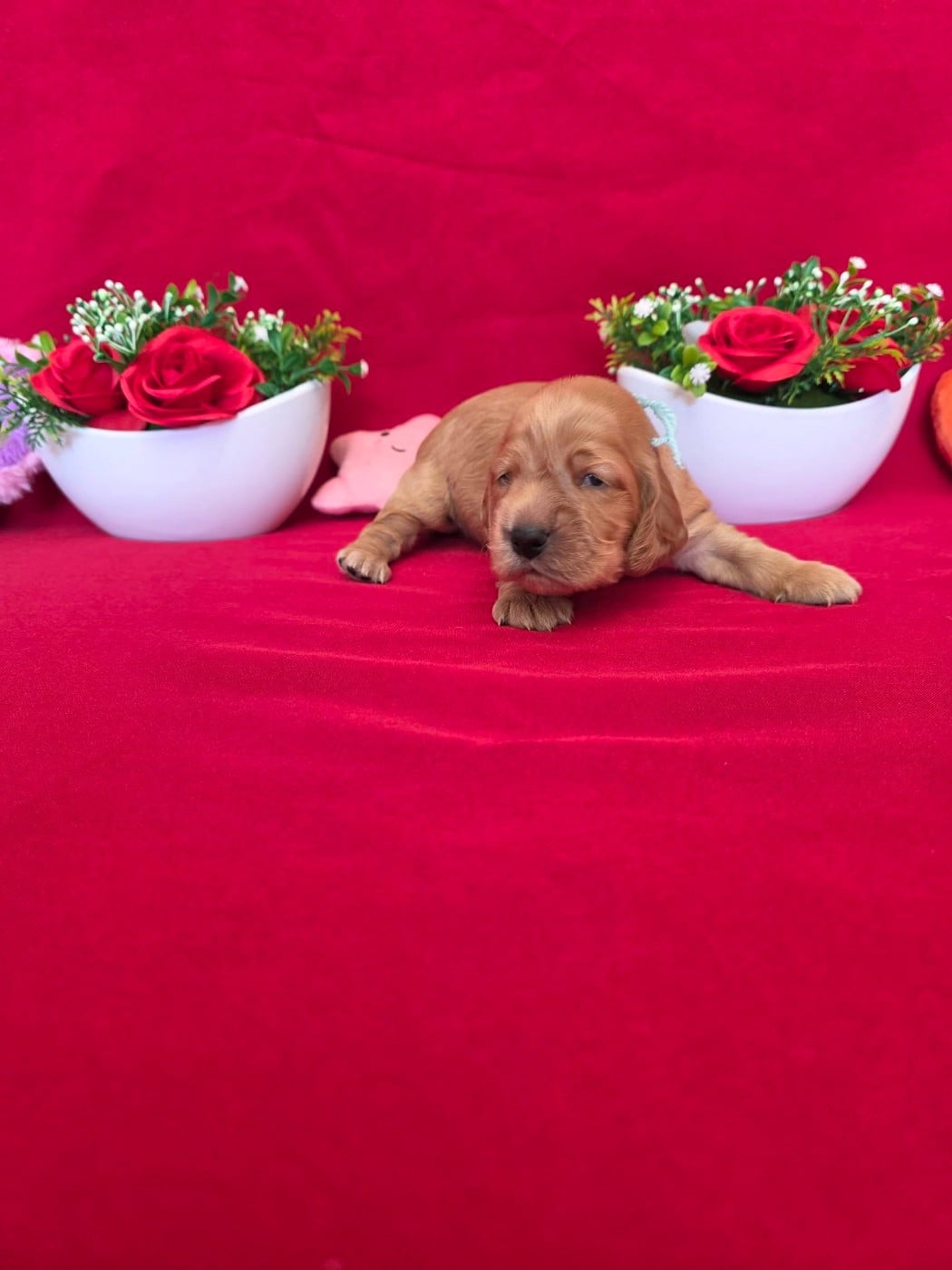 Bonjour à tous, Le " domaine de st Gladyce " est heureux de vous présenter aujourd'hui les 5 beautés du mariage entre U' asm et mon beau U2. Chiots cockers anglais, lof, et issus de parents entièrement testés ainsi que l'ADN, pour leurs traçabilités et la preuve de leur pure race. Les bb seront pucés, vaccinés, vermifugés et auront leur certificat vétérinaire ainsi que des conseils de l'élevage et un kit cadeau de départ pour votre bb. Les bb étant pour race, ils seront inscrit aux livres des origines françaises, et auront leur pédigrée., excellents origines de beautés. Les bb sont nés le : 10/03/2026 et seront disponibles vers le 09/05/2026, possibilité de garder votre bb plus longtemps pendant vos vacances. Il y a du golden et du noir. Les photos sont refaites tous les 15 jours, puis mises sur mon site internet pour suivre l'évolution de votre bb. Il y a 2 femelles et 3 mâles de disponibles à la réservation. Tout le monde est visible sur mon site internet, il est toujours à jour, vous pouvez donc y aller visiter et pour choisir votre bb, il y a les photos des parents ainsi que les résultats de leurs tests de santé. N'hésitez pas à me contacter si vous avez besoin de plus de renseignements. à bientôt gladyce