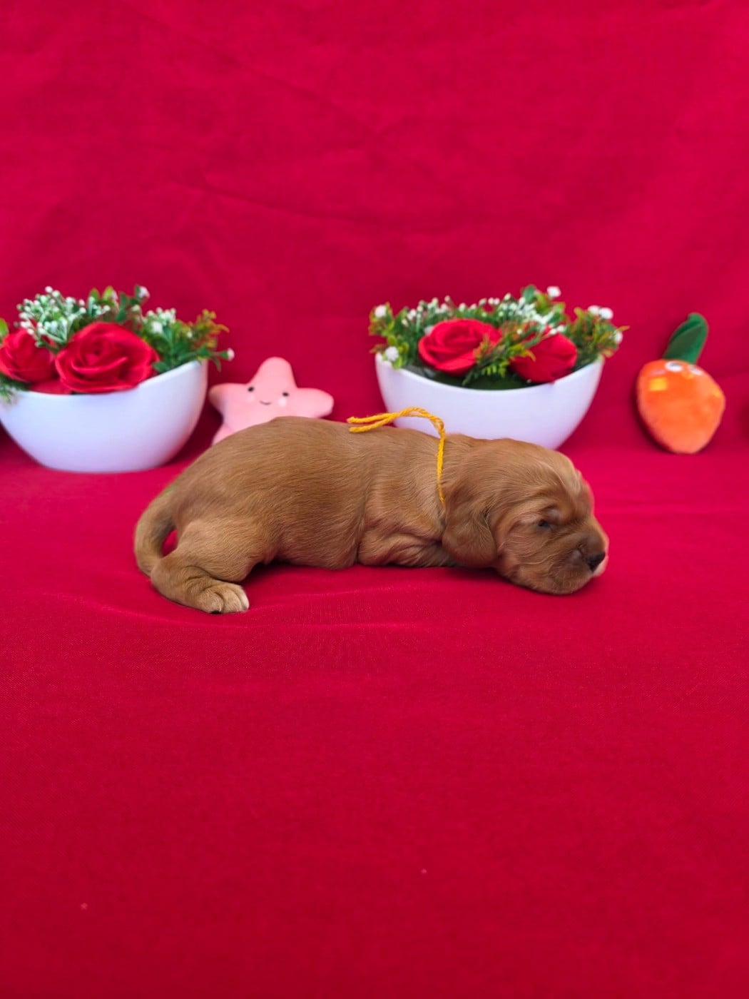 superbe femelle de couleur golden avec un petit point blanc au poitrail qui ne restera peut-être pas en grandissant, elle porte le collier jaune !!! part chez dorian et xelina dans le 33 !!!